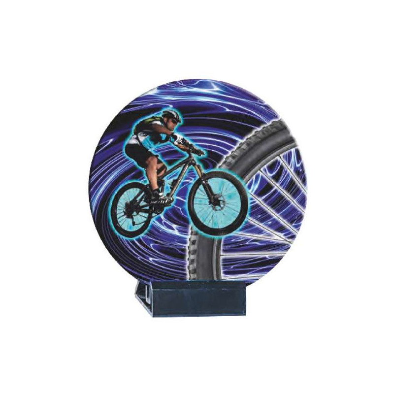 Petit trophée disque en céramique avec socle : plaque de céramique opaque et rond, décor en couleur. Le trophée n'est pas collé ou fixé, il est à poser sur le socle ABS noir.