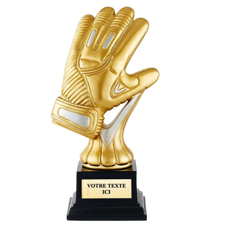 Trophée spécial Gant de Gardien de but/football. Matière : résine - coloris : doré - hauteur 27cm. Prix Affiché TTC