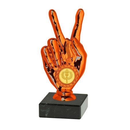 Trophée divers victoire avec pastille. Coloris : or, argent, bronze - matière : ABS métallisé socle en marbre - hauteur 18cm - pastille diamètre 25mm, discipline au choix. Prix affiché TTC